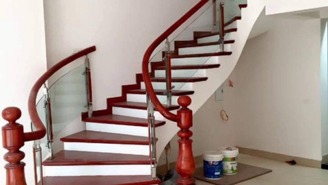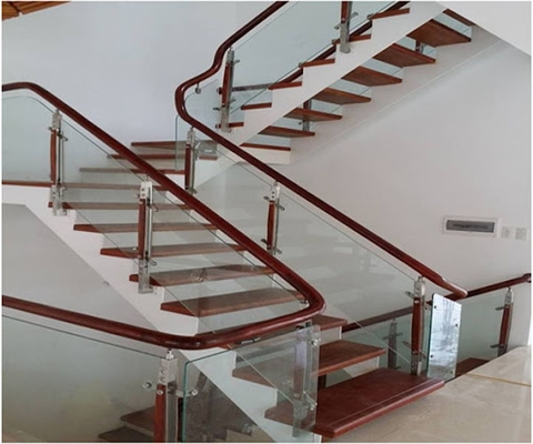 Lắp đặt cầu thang kính tay gỗ vuông có trụ