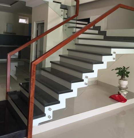 Cấu tạo cầu thang kính tay vịn bằng gỗ: