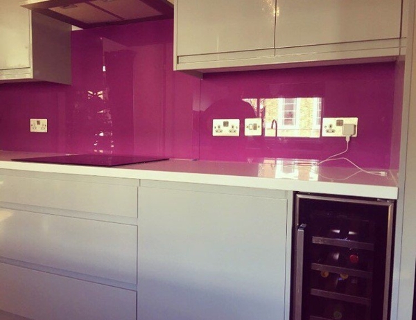 Kính ốp bếp màu hồng đang được khá nhiều các gia chủ mệnh Thổ, mệnh Hỏa lựa chọn trang trí cho căn bếp gia đình.