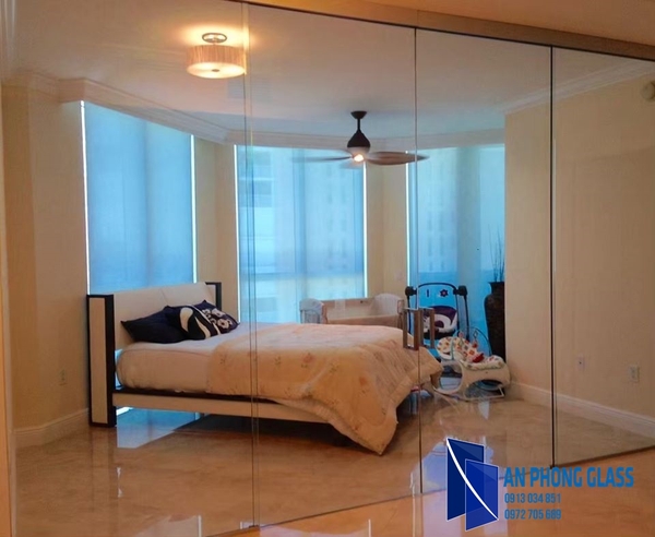 Cửa kính ngăn phòng nhà chị Hương đường Nguyễn Chí Thanh
