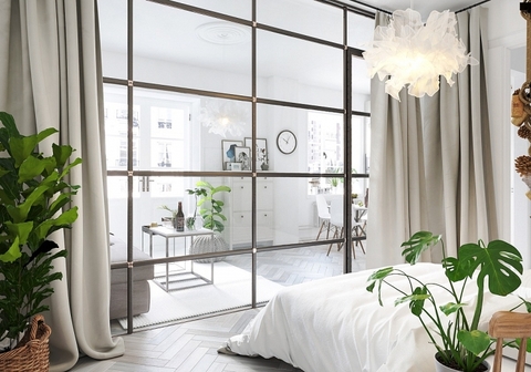 - Vời phòng ngủ, vách ngăn kính cường lực cách âm tốt, giúp hạn chế tiếng ồn tối đa để không làm ảnh hưởng tới giấc ngủ của gia chủ. Phòng ngủ được bao bọc bởi vách ngăn bằng kính tạo nên sự khác biệt và cuốn hút cho căn hộ. Vách kính cường lực giống như chiếc gương soi khổ lớn ngự trên tường càng nhấn mạnh hơn nữa sự cởi mở và rộng rãi của căn phòng. Đồng thời, nó giúp kết nối không gian với phần còn lại của căn hộ thậm chí còn nhiều và chặt chẽ hơn so với bình thường.